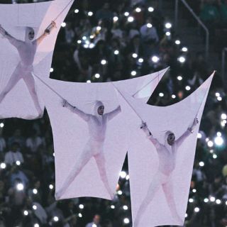 Una vez que el orden volvió al Omnilife, vino Eugenia León, quien hizo gala de su gran voz mientras en el centro del escenario descendía una pantalla donde se proyectaron imágenes en silueta de todos los deportes.
