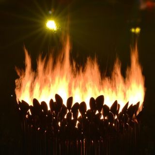 El pebetero, formado por varias columnas que se fueron levantando, fue encendido por siete jóvenes que recibieron la antorcha de manos del pentacampeón olímpico británico de remo Steve Redgrave.