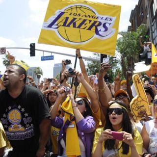 Desde muy temprano, una gran multitud formó una valla en un tramo de 3.2 kilómetros (dos millas) en Los Ángeles para tomar los mejores lugares con la esperanza de ver a su equipo sobre la plataforma decorada de un camión.