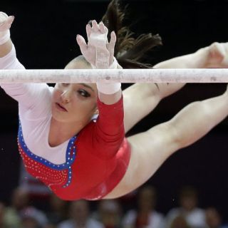 LONDRES, INGLATERRA (06/AGO/2012).- La rusa Aliya Mustafina le dio a Rusia la medalla de oro al ganar la final de barras asimétricas dentro de la actividad de la gimnasia artística de los Juegos Olímpicos de Londres 2012.
