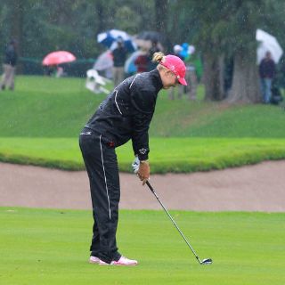 GUADALAJARA, JALISCO (16/NOV/2013).- Puede deberse al campo mojado, a la lluvia irregular que cae sobre el Guadalajara Country Club o a que el mismo paso de los demás grupos ya dejó el green algo afectado; pero el último grupo del día, conformado por So Yeon Ryu, Anna Nordvist y Pornanong Phatlum no ha tenido el día que se esperaba hasta la mitad del recorrido.