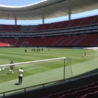 El inexperto portero arrancó risas y carcajadas de sus compañeros, quienes disparaban a portería lo mejor que podían, así como de los 35 aficionados aproximadamente, que se dieron cita en el estadio Omnilife para ver a sus ídolos entrenar.