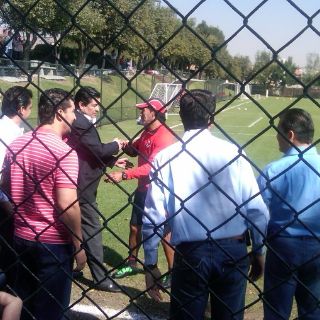El técnico nacional, José Manuel de la Torre, llegó por la entrada principal del club junto con el director de selecciones nacionales Héctor González Iñárritu e inmediatamente accedieron a la cancha dos donde ya los esperaba el técnico Benjamín Galindo.
