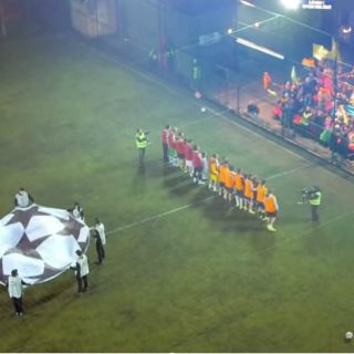 Una marca de tarjetas de crédito y debito se encargó de sorprender a unos aficionados del futbol en su partido cuando preparó una entrada como la que realizan los futbolistas profesionales en la Liga de Campeones.