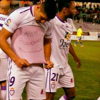 "Jona", delantero del Real Jaén, se declaró sorprendido por haber sido multado con dos mil euros por haber exhibido una camiseta en la que se solidarizaba con los niños enfermos de cáncer tras haber marcado el primero de los dos goles en el partido ante la UD Las Palmas.