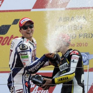 SILVERSTONE, REINO UNIDO (20/JUNIO/2010).- El español Jorge Lorenzo (Yamaha) se impuso en el Gran Premio de Gran Bretaña de MotoGP, en el circuito de Silverstone, y se destaca al frente de la clasificación del mundial con 37 puntos de ventaja sobre el segundo sitio.