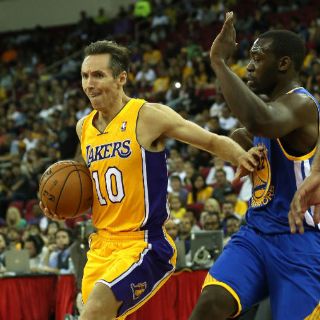 LOS ÁNGELES, ESTADOS UNIDOS (08/OCT/2012).- La nueva era de Los Ángeles Lakers con el base estrella, el canadiense Steve Nash, no tuvo su mejor comienzo en el partido amistoso de pretemporada que disputaron y perdieron por paliza de 110-83 ante los Warriors de Golden State.