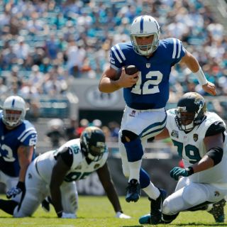 JACKSONVILLE, FLORIDA (21/SEP/2014).- Andrew Luck lanzó cuatro pases de touchdown, tres de ellos en un desigual primer tiempo, y los