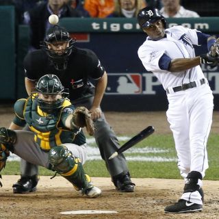 DETROIT, MICHIGAN (08/OCT/2013).- El dominicano Jhonny Peralta conectó un jonrón de tres carreras que empató la pizarra por vez primera y el venezolano Víctor Martínez volvió a igualarla mediante un polémico vuelacerca, para que los Tigres de Detroit vencieran el martes 8-6 a los Atléticos de Oakland y obligaran a un quinto duelo en la serie de primera ronda de playoffs en la Liga Americana.