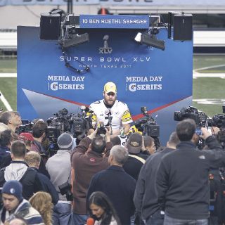 El quarterback de los Acereros evadió el martes las preguntas en torno a la suspensión que purgó al comienzo de la temporada por violar las políticas de la liga sobre conducta personal, y más bien hizo énfasis en su deseo de ser un modelo de conducta para otros, al tiempo que elogió a prácticamente todos los que tienen algo que ver con este Super Bowl.