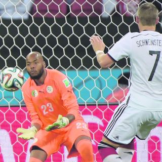 PORTO ALEGRE, BRASIL (01/JUL/2014).- Rais M’Bohli, portero de Argelia elegido mejor jugador del partido que perdió ante Alemania 2-1, afirmó en rueda de prensa que su equipo escribió la “historia” del futbol del país africano tras alcanzar los octavos de final y plantar cara al conjunto germano.
