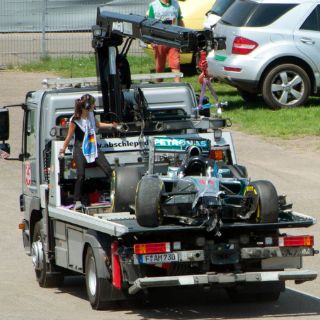 Hamilton -campeón del mundo en 2008, con McLaren-, que es segundo en el Mundial, a cuatro puntos de su compañero alemán Nico Rosberg, perdió el control de su Mercedes, a causa de un problema de frenos, en la zona del estadio del circuito de Baden-Württemberg, y se estrelló contra los neumáticos de protección.