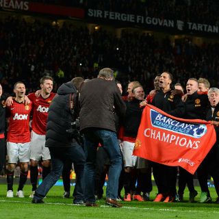 Las gradas de Old Trafford festejaron el título en una noche en la que Van Persie se erigió como el héroe local al marcar un triplete que le sirve para sumar 24 goles en liga y colocarse primero en el ránking de máximos anotadores del torneo, con un tanto más que el uruguayo del Liverpool Luis Suárez.