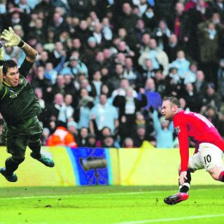 Wayne Rooney anotó dos goles con sendos cabezazos a los 10 y 39 minutos, el primero a un centro del ecuatoriano Antonio Valencia y el último en el rebote tras un penal que el arquero del City le tapó.