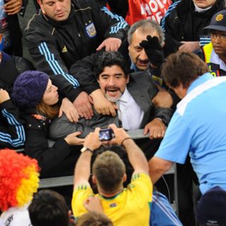 CIUDAD DEL CABO, SUDÁFRICA (03/JUL/2010).- Diego Maradona dijo que la derrota 4-0 ante Alemania fue "lo más duro" que ha vivido como deportista y no admitió errores, sino que la consideró más bien un accidente producto de un gol madrugador que condicionó todo.