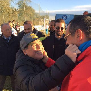 Maradona visitó este miércoles el centro deportivo del que fuera su equipo entre 1984-1991, en Castel Volturno, aceptando la invitación que le hicieron el último lunes algunos de los "pesos pesados" de la plantilla, como el meta español Pepe Reina.