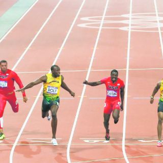 El ambiente lo electrificó Bolt, su rayo, su tormenta propia. La velocidad con que sus piernas derrotaron a la duda grosera, innoble; al voluntarismo de su amigo Blake, tan cercano. La noche mágica cayó de pronto desde el cielo, mirando de frente: a su izquierda, el estadounidense Justin Gatlin, el campeón olímpico de Atenas, del otro lado, Blake. Y un poco más allá, en pareja, el norteamericano Tyson Gay y su compatriota Asafa Powell. Los cuatro hombres más rápidos de la historia, todos por debajo de 9.80 segundos alguna vez en su vida, por primera vez codo con codo, rozándose casi, sintiendo la respiración agitada del otro, el temblor de sus manos y piernas al colocarse contra los tachones. Desafiándose en el misterio.