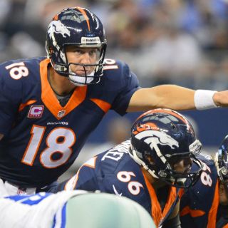 ARLINGTON, ESTADOS UNIDOS (07/OCT/2013).- Peyton Manning y los Broncos de Denver siguen invictos después de que Tony Romo cometió un error al final de un juego que rompió varias marcas en la NFL.