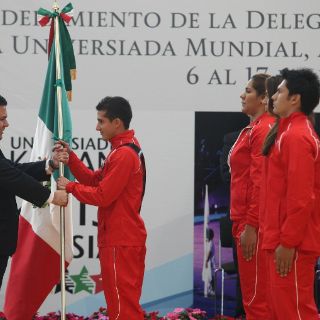 CIUDAD DE MÉXICO (28/JUN/2013).- Comandada por clavadistas olímpicos como Germán Sánchez, la delegación mexicana que participará en la Universiada Mundial, que se efectuará del 6 al 17 de julio próximo en Kazan, Rusia, fue abanderada.