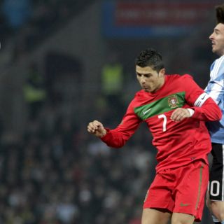 GINEBRA, SUIZA (10/FEB/2011).- La Selección de Argentina se impuso 2-1 a su similar de Portugal, en partido amistoso en el que Cristiano Ronaldo hizo un golazo, mientras Lionel Messi dio pase para gol y anotó de penal casi al final del encuentro.