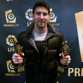 MADRID, ESPAÑA (13/NOV/2012).- El argentino Leo Messi se mostró orgulloso por su tercera elección consecutiva como mejor jugador y mejor delantero de la temporada 2011-2012 en los premios de la Liga de Futbol Profesional (LFP), que también reconocieron a Andrés Iniesta, Carles Puyol, Marc Bartra y el extécnico del Barça, 'Pep' Guardiola.