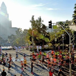 maratón de la ciudad de Los Ángeles en la categoría de silla de ruedas enfrentando adversidades dentro y fuera de la competencia.