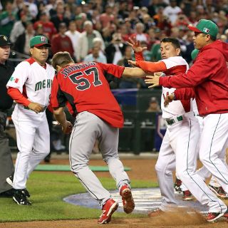 En la novena entrada se desató una bronca entre mexicanos y canadienses, luego que el lanzador azteca Arnold León golpeó con la pelota al bateador Rene Tosoni, por lo que ambas bancas se involucraron en una trifulca, que generó la expulsión de los dos iniciadores.