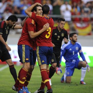 1-España: De Gea (Mariño, min. 46), Montoya (Azpilicueta, min. 75), Íñigo, Domínguez, Jordi Alba, Javi Martínez, Koke, Isco, Mata (Romeu, min. 81), Tello (Rodrigo, min. 59) y Adrián (Illarramendi, min. 59)