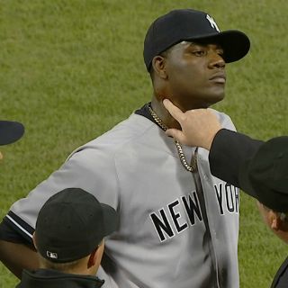 La expulsión del derecho dominicano se produjo durante el segundo inning cuando el umpire del plato, Gerry Davis, detectó una sustancia que brillaba en el lado derecho del cuello de Pineda.