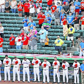También, en el Rangers Ballpark de Arlington, las banderas ondearán a media asta y una lona negra cubrirá el lugar donde cayó Stone.
