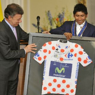 Quintana, de 23 años, fue subcampeón en el Tour de este año, "rey de la montaña" y campeón de los jóvenes, actuación que lo ha convertido en la nueva estrella del ciclismo colombiano.