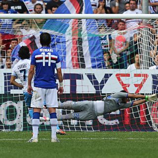 GÉNOVA, ITALIA (30/SEP/2012).- El Nápoles no falló y, aunque con muchos problemas, el penalti convertido por el uruguayo Edinson Cavani les dio la victoria contra el Sampdoria y les permite seguir junto con el Juventus en la cabeza de la clasificación.