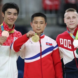 RÍO DE JANEIRO, BRASIL (15/AGO/2016).- El norcoreano Se Gwang Ri obtuvo el título olímpico en la prueba de salto de caballo varonil de la gimnasia artística de los Juegos Olímpicos Río 2016, y dejó la plata al ruso Denis Abliazin y el bronce al nipón Kenzo Shirai.