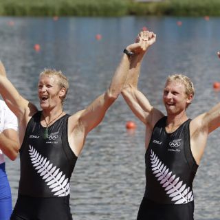 LONDRES, INGLATERRA (03/AGO/2012) - La pareja neozelandesa se proclamó este viernes campeona olímpica de remo en la modalidad de dos sin timonel de los Juegos de Londres 2012 en el lago de Eton.
