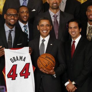 "Aunque estoy un poco disgustado de que los Chicago Bulls no lo consiguiesen, quiero dar la enhorabuena a los Miami Heat", bromeó Obama en referencia a su equipo favorito.