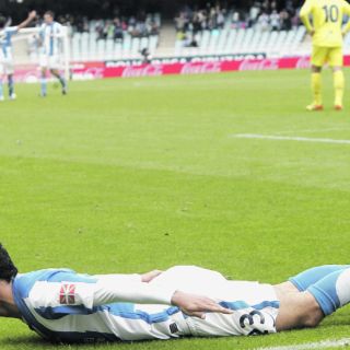 SAN SEBASTIÁN, ESPAÑA (23/ABR/2012).- Y no se cansa de hacer goles. Carlos Vela anotó a cuatro minutos del final y la Real Sociedad rescató un punto al igualar 1-1 con Villarreal, resultado que lo tiene más cerca de asegurar su permanencia.