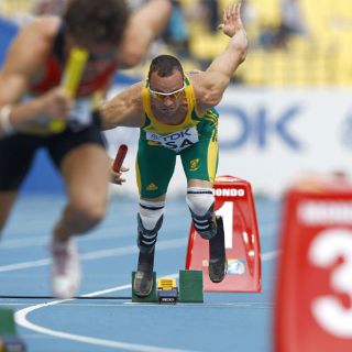 DAEGU, COREA DEL SUR (02/SEP(2011).- Oscar Pistorius, el corredor que compite con prótesis, se clasificó el jueves a su primer final de una gran cita, al largar como la primera posta del relevo 4x400 de Sudáfrica, en el Mundial de Atletismo.