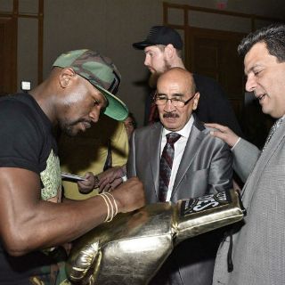 "The Money Team" acudió a la cena de gala de la 54 Convención Anual del Consejo Mundial de Boxeo (CMB), como siempre, rodeado de su equipo de seguridad, pero muy accesible con quienes se acercaron a él.