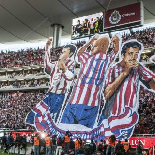ZAPOPAN, JALISCO (13/MAR/2016).- En un 'entradón' en el estadio Chivas, la primera manifestación del conjunto local en la tribuna fue una gran imagen que emergió con el lema: "campeonísimo uno", que aludió a la polémica que se desató tras la oficial del conjunto americanista, en la cual aseguraban tener este mote.