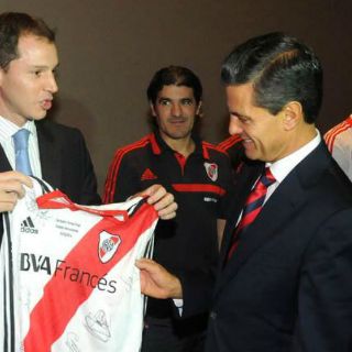 Jorge Brito, presidente del cuadro millonario, fue el encargado de obsequiarle al Mandatario la playera del equipo, la cual lucía en la parte de la espalda el número 35, haciendo alusión al más reciente título de liga obtenido por River Plate.