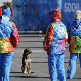 SOCHI, RUSIA (07/FEB/2014).- Los perros callejeros siguen apareciendo en los lugares menos esperados en los Juegos Olímpicos de