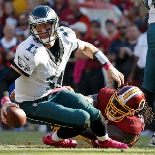 El mariscal de campo Carson Wentz completó 11 de 22 pases para 179 yardas.