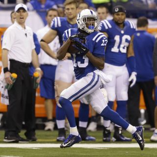 INDIANÁPOLIS, INDIANA (23/NOV/2014).- T.Y. Hilton celebró el nacimiento de su primogénita con una recepción de 73 yardas para un touchdown, lo cual encendió la reacción que permitió los