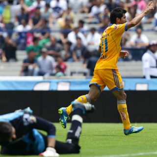 Sin embargo, el guardameta local poco pudo hacer para evitar el 1-0 a favor de Tigres, cuando en el minuto 32 Damián Álvarez perforó la zaga local por izquierda, sacó centro retrasado y Alan Pulido remató a bocajarro, Palacios detuvo pero no pudo quedarse con el balón, que dejó a la llegada de Danilo Verón, que sin problemas abrió el marcador.