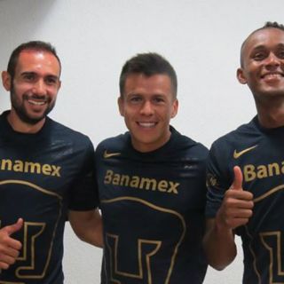 Los tres jugadores lucieron la camiseta en azul marino con la figura del puma en dorado y los vivos de este mismo color, siempre lanzando una sonrisa para la fotografía.