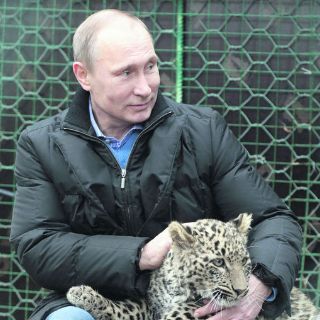 Putin visitó un santuario para leopardos persas, una especie en peligro de extinción, y jugó con algunos cachorros nacidos el verano pasado en las montañas aledañas a Sochi, sede de los Juegos.