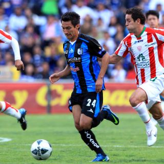 QUERÉTARO, QUERÉTARO (29/ENE/2011).- Lleno de drama hasta el final, con un Necaxa que empujó de forma desesperada por rescatar el resultado, Querétaro ganó 1-0 a Necaxa en el choque entre los últimos dos sitios de la tabla por el no descenso que pone en la tablita al técnico rojiblanco Daniel Brailovsky.