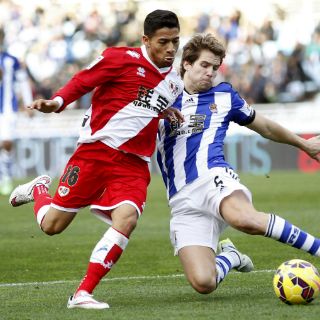 SAN SEBASTIÁN, ESPAÑA (17/ENE/2015).- Rayo Vallecano se impuso por 1-0 a la Real Sociedad para silenciar el estadio de Anoeta, en un partido que tuvo presencia mexicana con el aporte de Javier Aquino en el equipo vencedor y de Carlos Vela en el otro bando.