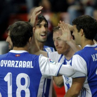 Los visitantes fueron quienes se mostraron con más ganas de buscar el arco rival, siendo recompensados al minuto 19, cuando después de un rechace del arquero rival, el mediocampista Xabi Prieto picó el balón y puso en ventaja a los albiazules.