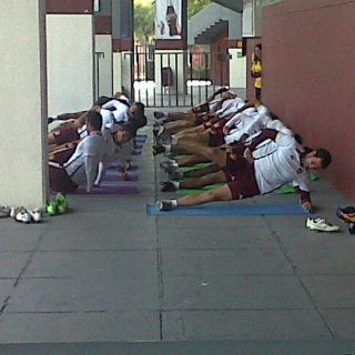 El equipo estudiantil trabajó este día en la zona del gimnasio y posteriormente en la cancha dos, en las instalaciones del Estadio Tres de Marzo, no se trabajó al interior del inmueble pues se está adecuando para un evento religioso que se realizará el día de mañana.